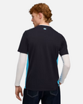 Avec son coloris sombre et profond, contrasté par des accents bleu ciel sur le col, les manches et les flancs, ce maillot impose un style résolument urbain et puissant. L’écusson de l’OM et le logo Puma sont mis en valeur dans une finition raffinée, symbole de la fierté phocéenne.