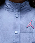 El estilo urbano y la practicidad se unen en esta ligera chaqueta Jordan "Blue Jeans & Bling". Diseñada para niños, combina un corte moderno, detalles cargo funcionales y tejido de nailon arrugado para un look dinámico y urbano. Ideal como capa ligera de entretiempo o para completar un conjunto casual.